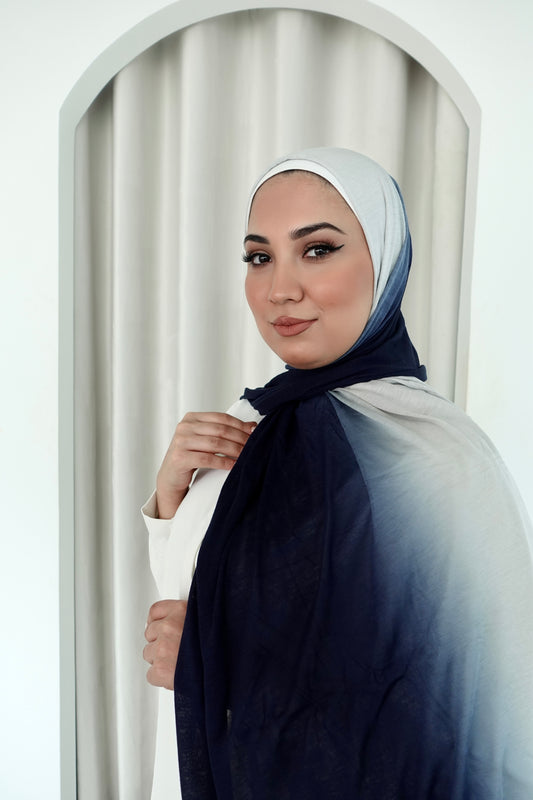 Ombre Jersey Hijab - Grey to Navy │ Snow Scarves