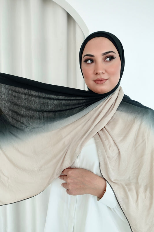 Ombre Jersey Hijab - Beige to Black │ Snow Scarves