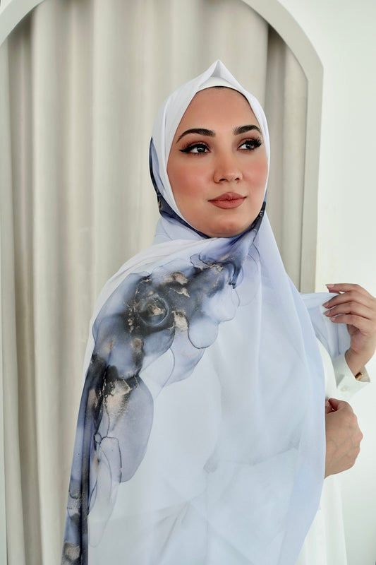 Arabic Calligraphy Ombre Hijab - Marble │ Snow Scarves