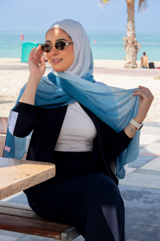Beige to Blue Ombre Hijab │ Snow Scarves