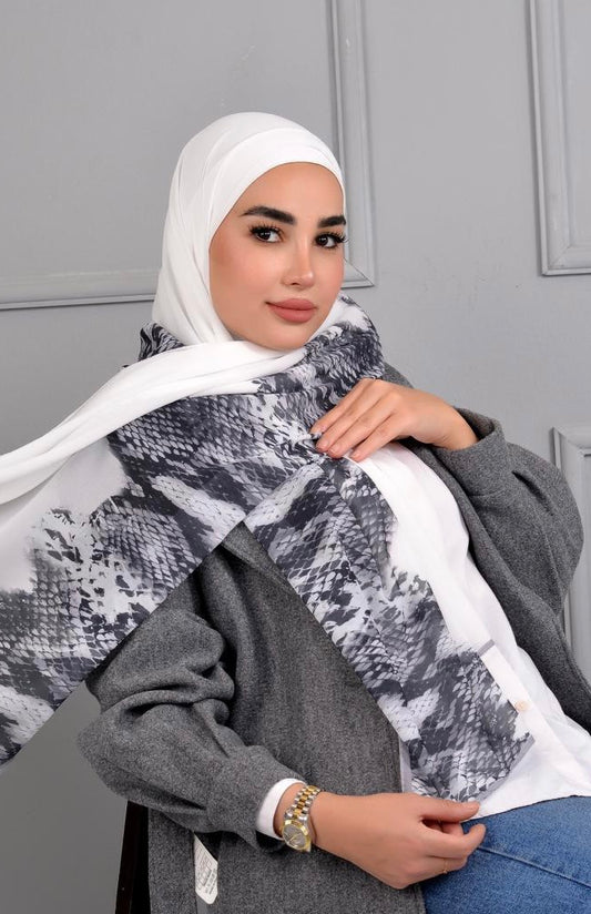 Grey Ombre, Snake Print Hijab │ Snow Scarves