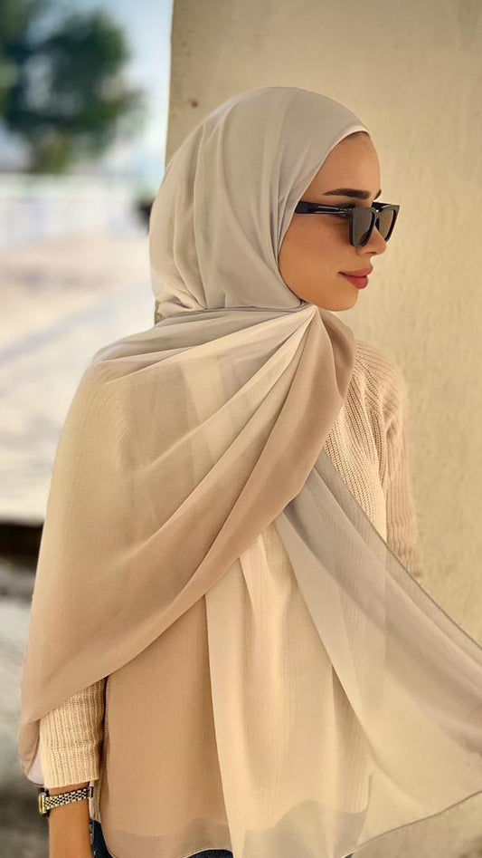 Neutral Perfection, Grey to Beige Ombre Hijab │ Snow Scarves