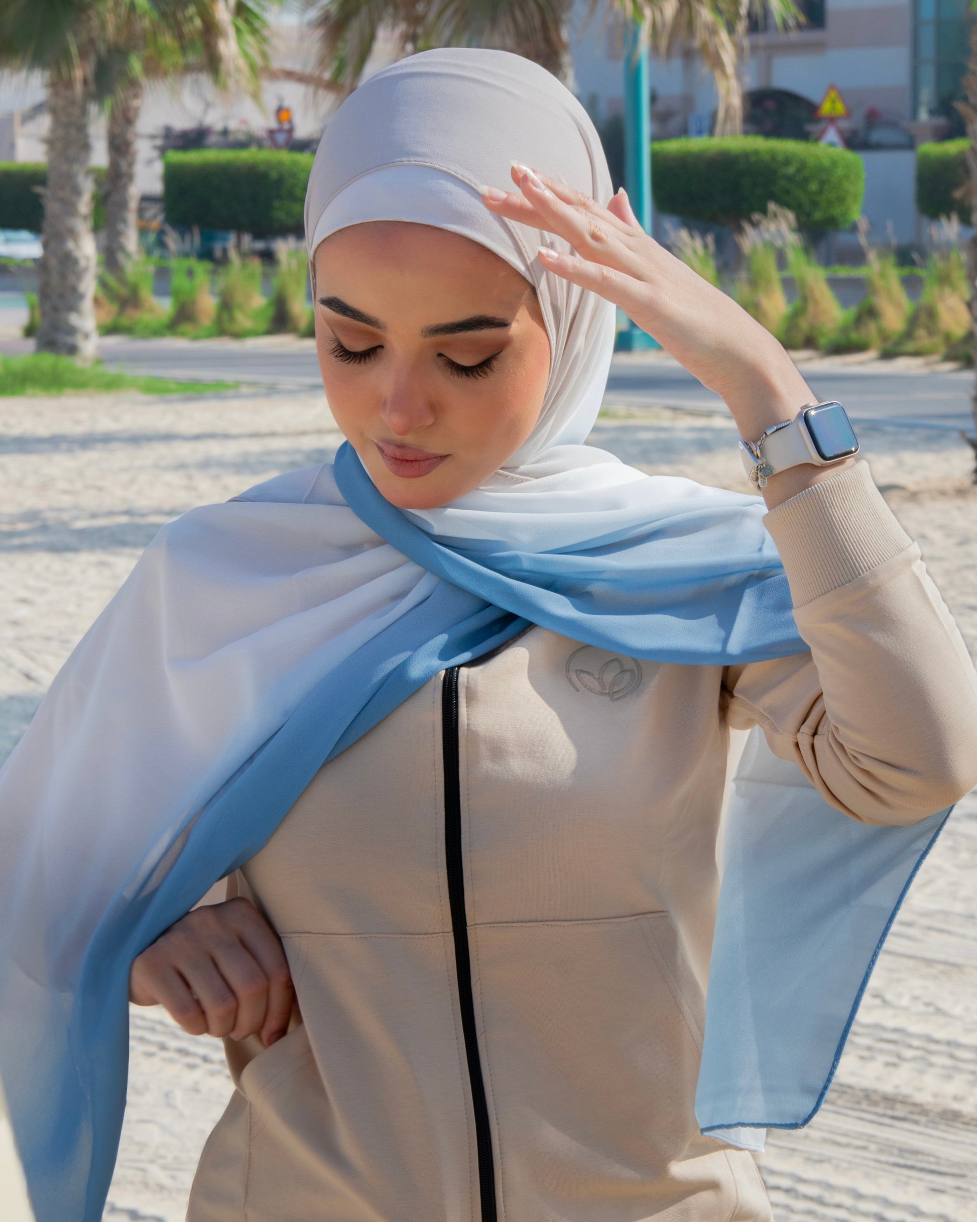 Beige to Blue Ombre Hijab │ Snow Scarves