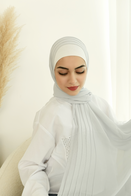 Nina Valentina - Off White Pleated, Plain Hijab │ Snow Scarves
